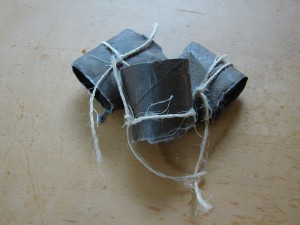 2. Stuff the dryer lint into the cardboard roll and tie with a piece of natural twine. The twine will be used as a place to light the finished fire starter.