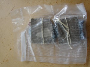 5. Once the fire starters are dry, I typically cut the cardboard rolls in half and vacuum seal them along with a few matches.
